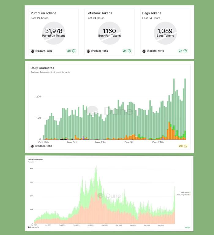 PumpFun 每日毕业代币大幅增长,新增钱包数量达到了自 2025 年 1 月以来的最高水平! #pump #bonk