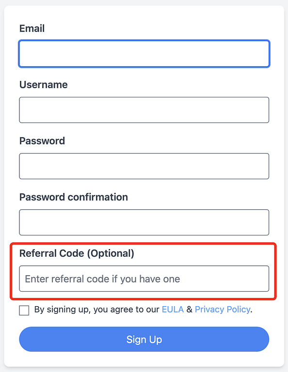 In addition to sharing your unique referral URL link, friends can now simply input your referral code during registration to connect and earn rewards.
