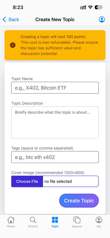 发布一个话题,将消耗 100 个积分(扣完不退哦~),请确保话题有足够讨论价值,大家一起维护高质量讨论区。