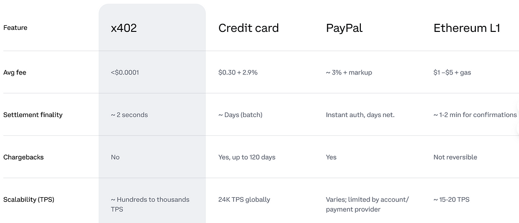 • x402 是去中心化的,无需中介,Stripe 依赖中心化网关。
