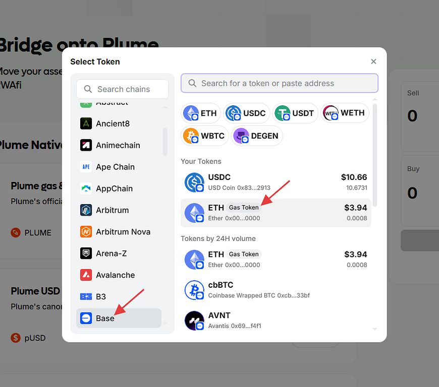 SELL选择Base链的ETH。