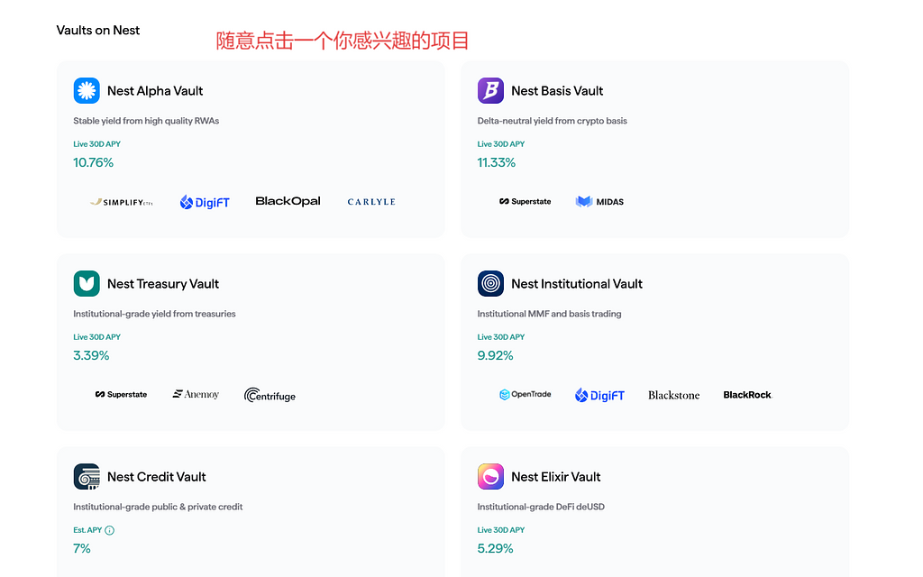 Nest相当于一个聚合器,把RWA上的项目都收录到其中。