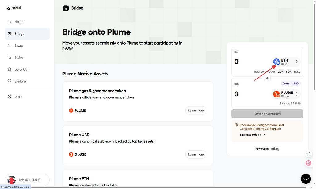 选择官方桥。我们需要把资产跨链到Plume链上。