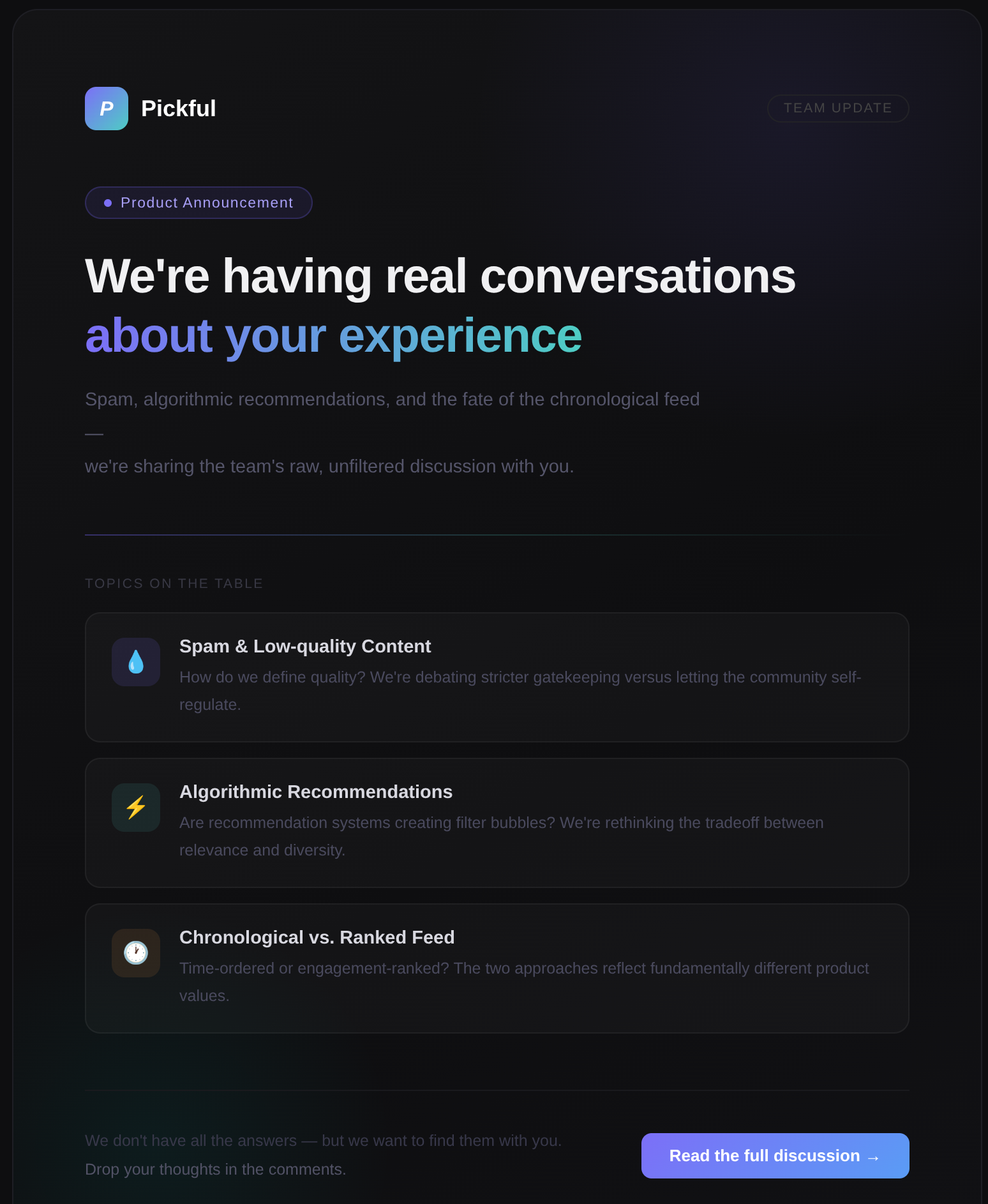 Questions or suggestions? Head over to Pickful Tech & Product to share your feedback. #product #WeeklyMeeting