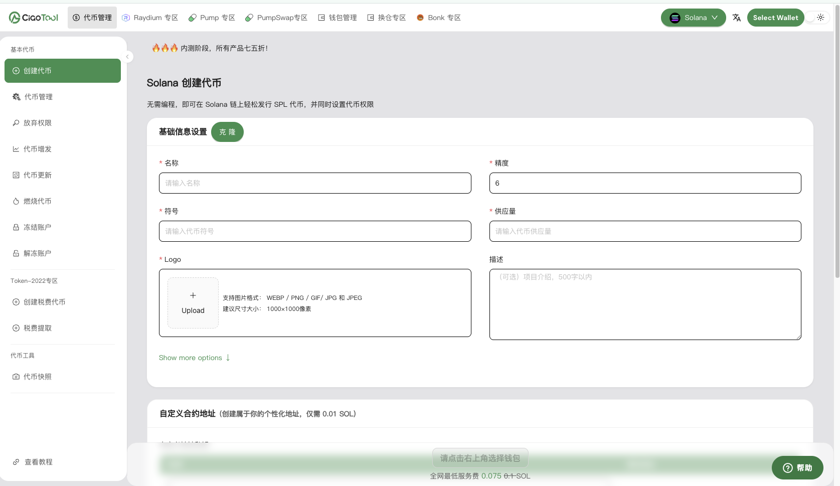 CiaoTool,用户无需编写代码,即可在几分钟内创建并部署属于自己的 Solana 代币。