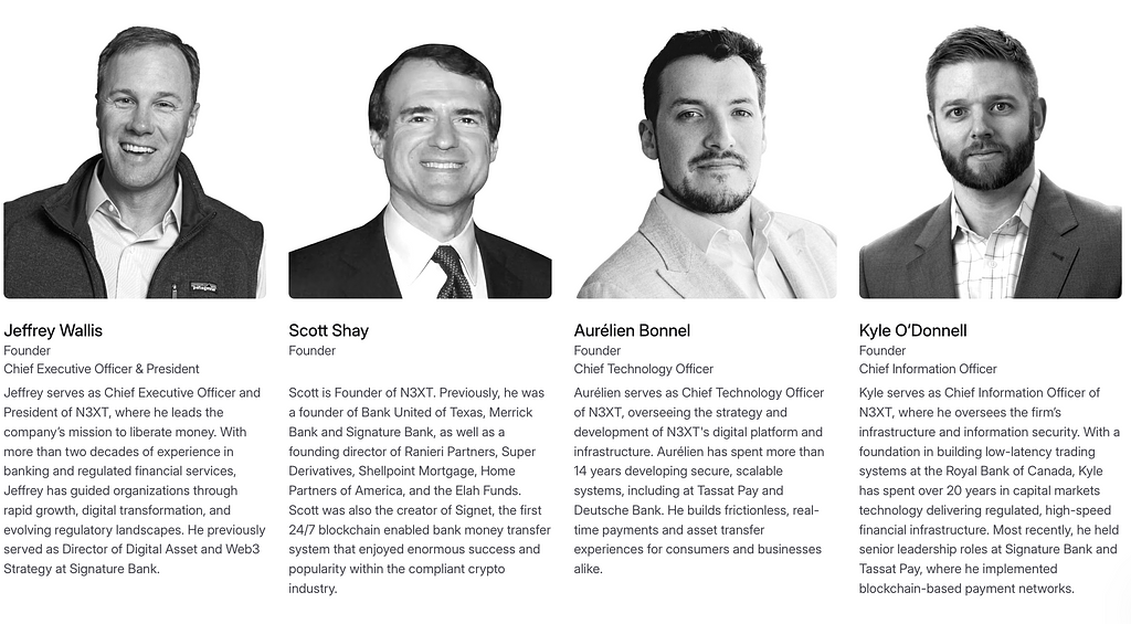 n3xt 的领导团队由银行、金融服务和科技领域的资深专家组成,强调数字转型和监管合规: