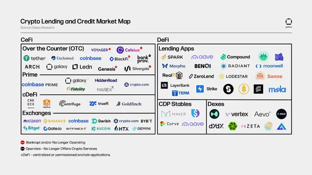 加密信用市场的迁移是宏观经济的镜像:全球债务市场规模达数万亿美元,而DeFi仅数千亿,却以指数速度扩张。过去,过度抵押(如Aave的模式)确保了无信任环境下的安全性——借款人需提供超过借款额的抵押品,形成自我监管生态。但这限制了借贷效率,无法像现代经济那样基于未来生产力借贷。