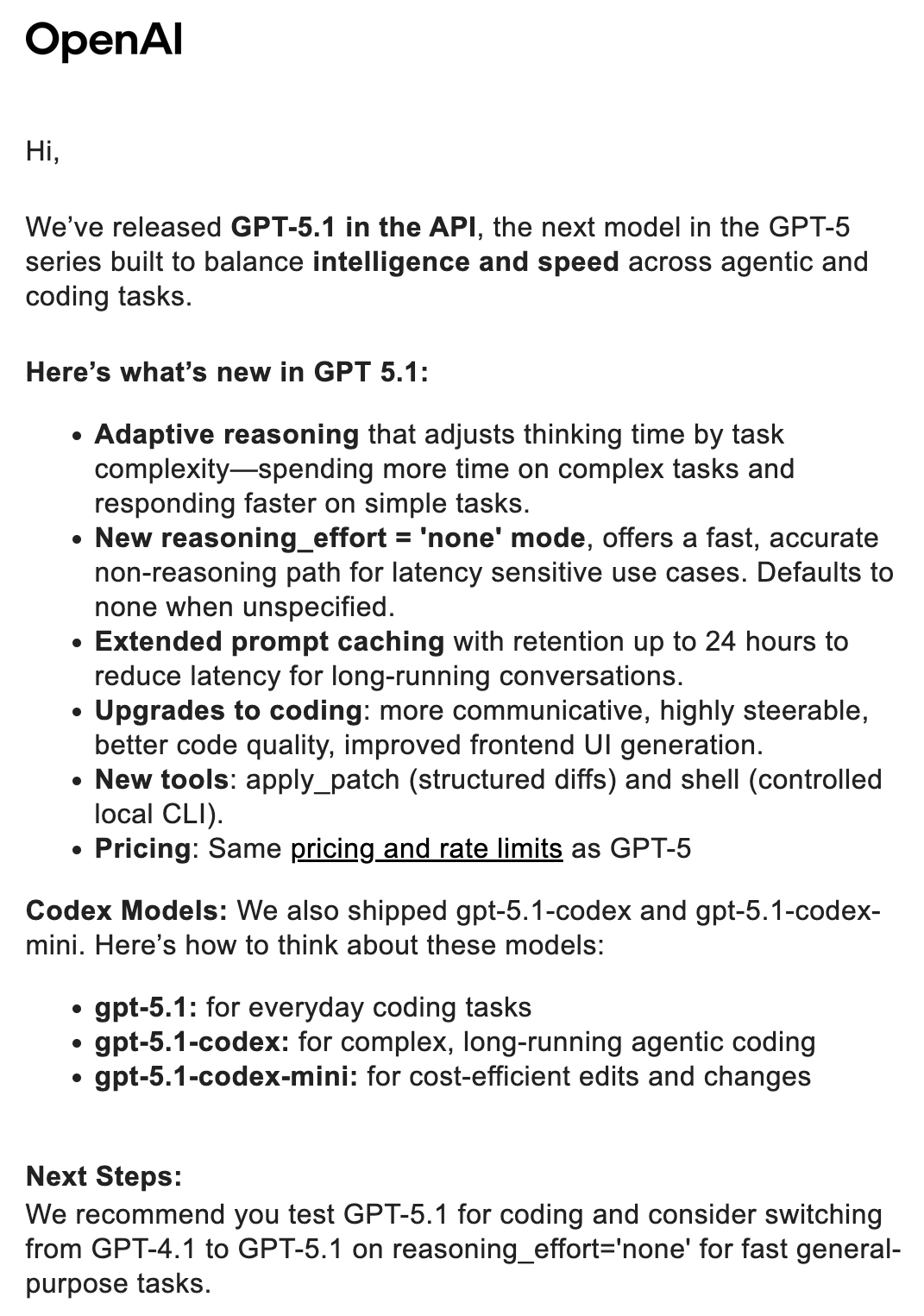 我们建议您测试 GPT-5.1 的编码性能,并考虑将 reasoning_effort='none' 设置为 GPT-5.1,以快速完成通用任务。#GPT5 #GPT #API #OpenAI #codex