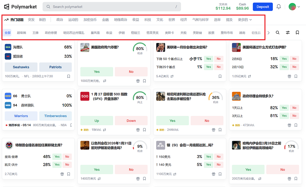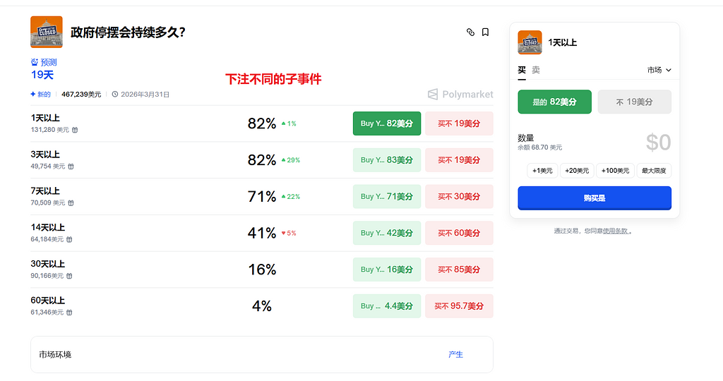 上面是预测事件的分类情况。其中有单组YES+NO还有多组。还有体育竞技类的不同球队名字等理论上是一样的。
