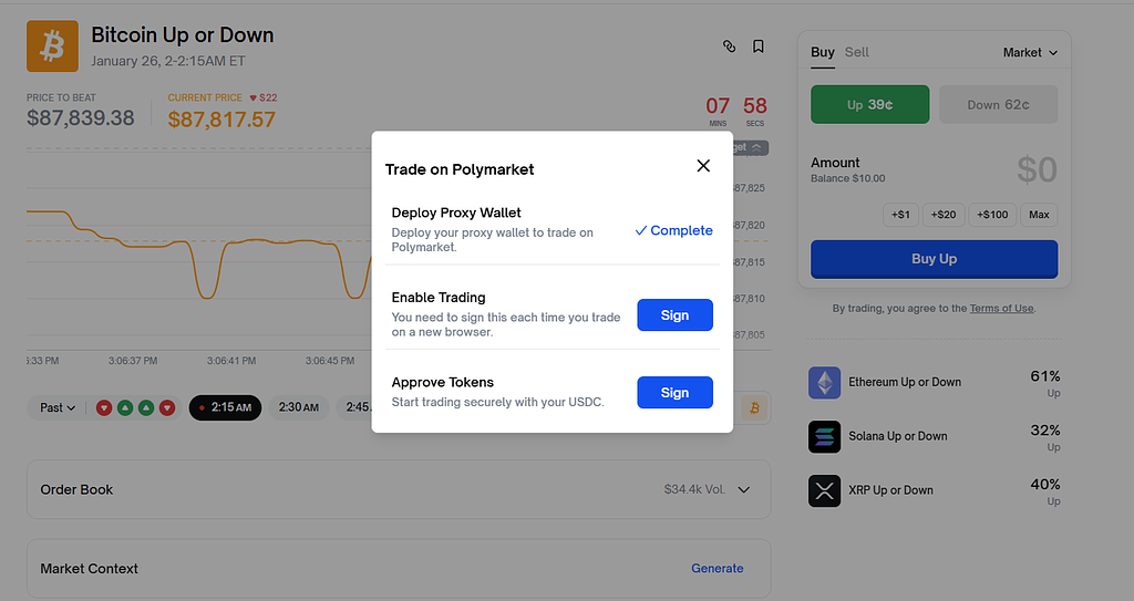 那么举例进行开单,以BTC 15分钟涨跌为例。